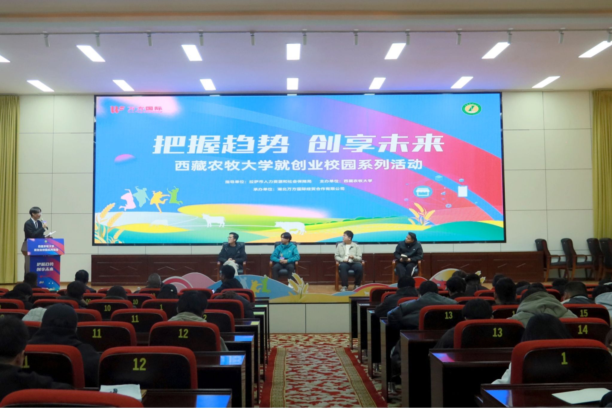 为推动我校新业态就业创业培育行动,吸引大学生关注新业态就业创业机遇,2025年11月19日-21日我校联合湖北万方国际经贸合作有限公司等多家单位,在一号办公楼学术报告厅举办“把握趋势・创享未来”就创业校园系列活动。超300名学生代表参与现场活动,活动通过抖音、视频号同步直播。