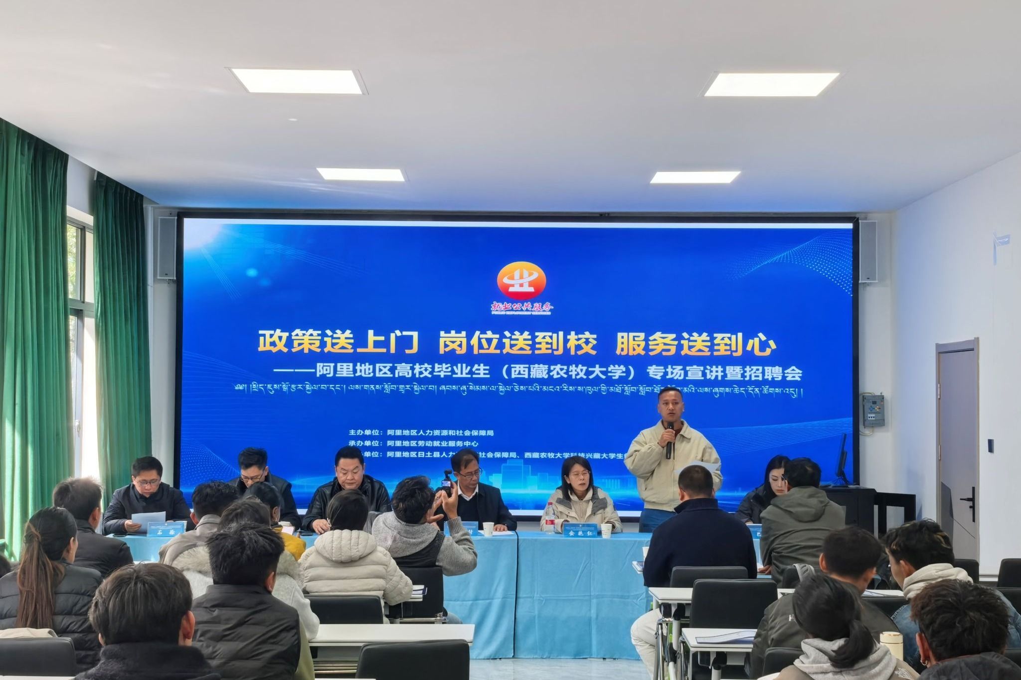 为落实自治区高校毕业生就业创业工作部署,精准对接需求、搭建供需桥梁,4月10日上午,阿里地区人社局副局长金艳红一行7人莅临西藏农牧大学,开展就业创业政策宣讲暨招聘活动,助力我校阿里籍毕业生高质量就业。学校学工部负责人、相关学院分管就业领导、40余名我校阿里籍毕业生及相关工作人员参加活动。
