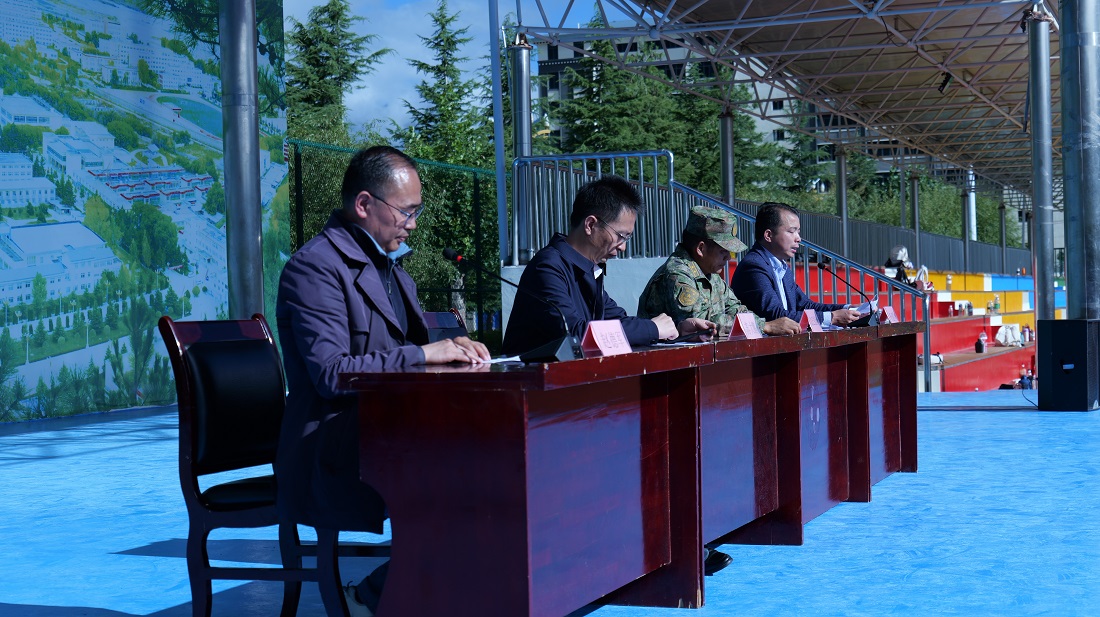 9月1日上午,2023年度(2022级、2023级)本科生军训动员大会在体育场举行,3000余名学生军训拉开帷幕。动员会由学生工作处处长赵德军主持,党委副书记、副院长苏大鹏、军训营营长边巴扎西出席,各二级学院(部)负责军...