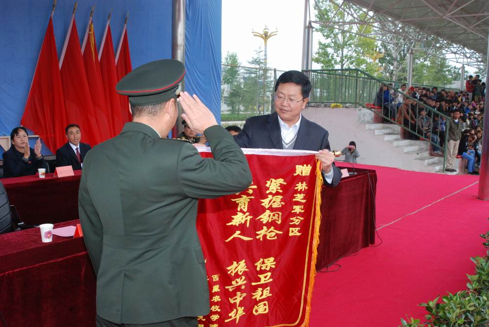 院党委书记、副院长纪建洲同志为军分区授锦旗
