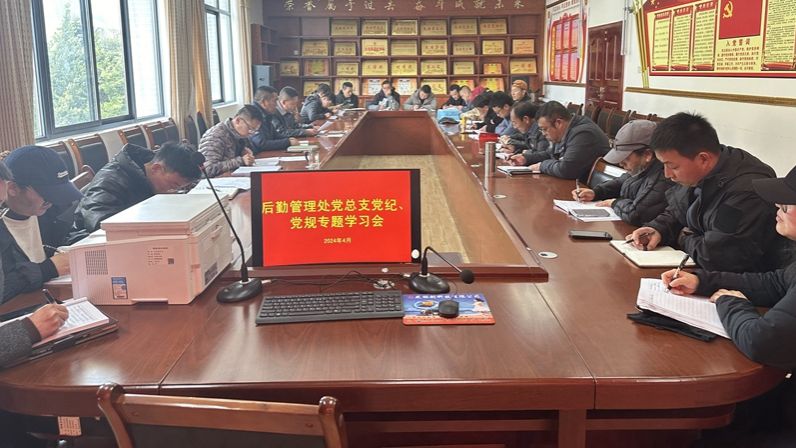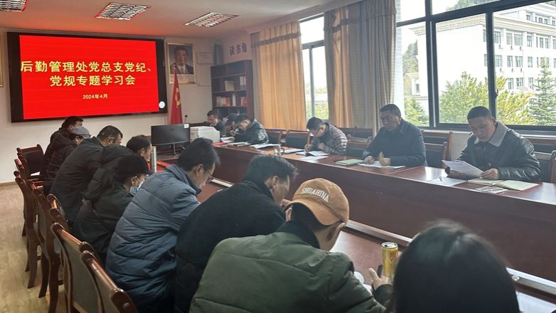 为了进一步加强党的纪律建设,切实提高党员干部的纪律观念和规矩意识,4月12日上午,后勤处党总支组织全处党员召开了“党纪、党规”专题学习会,会议由处党总支书记普穷同志主持。