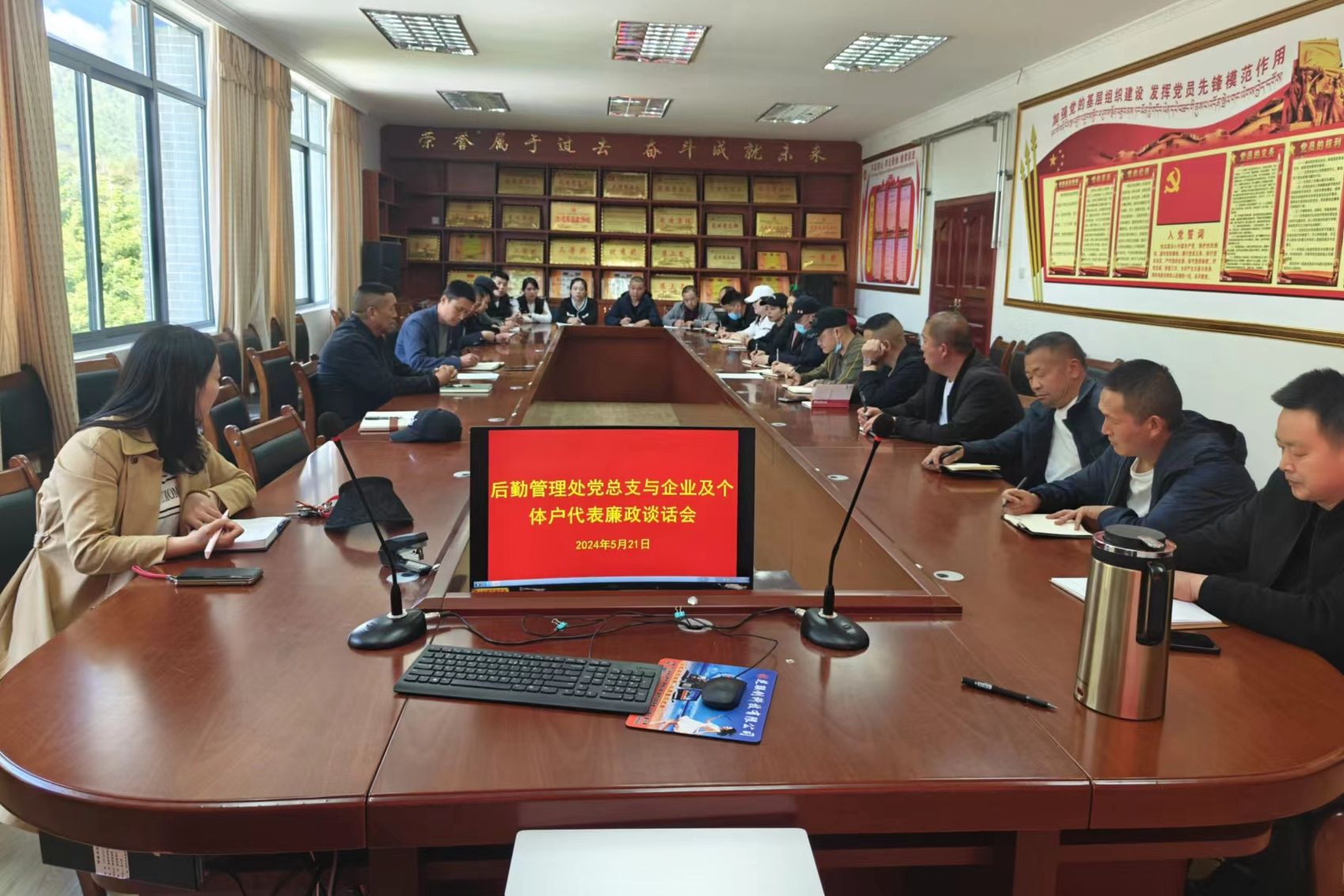 为加强对我校经营企业、个体商户的廉政教育、管理、监督工作,全面深化“清廉后勤”建设,营造风清气正的政治生态和干事创业的良好环境,2024年5月21日,后勤处党总支召开与企业、个体商户代表廉政谈话会,会议由后勤管理处副处长赵长锋同志主持。