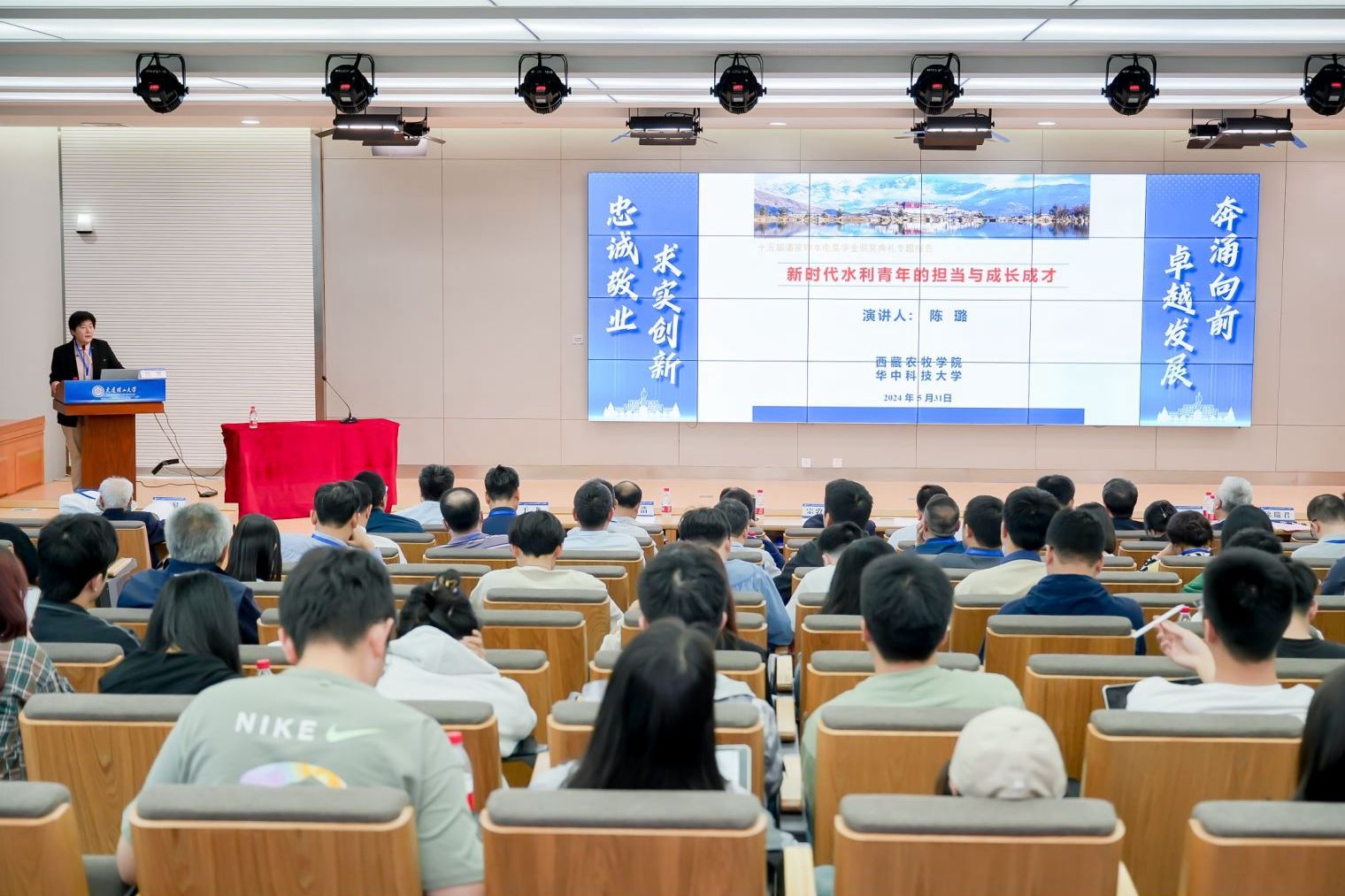 颁奖典礼结束后,我校陈璐教授作为水电行业青年学者给潘家铮水电奖学金获奖学子做《新时代水利青年的担当与成长成才》的专题讲座,陈璐教授从水利的发展史、新时代水利青年的责任与担当、成长与成才等方面进行讲述,并结合自己的求学历程勉励新时代水利青年应当赓续老一辈水利人的光荣传统,为新时代水利事业改革发展贡献青春力量。