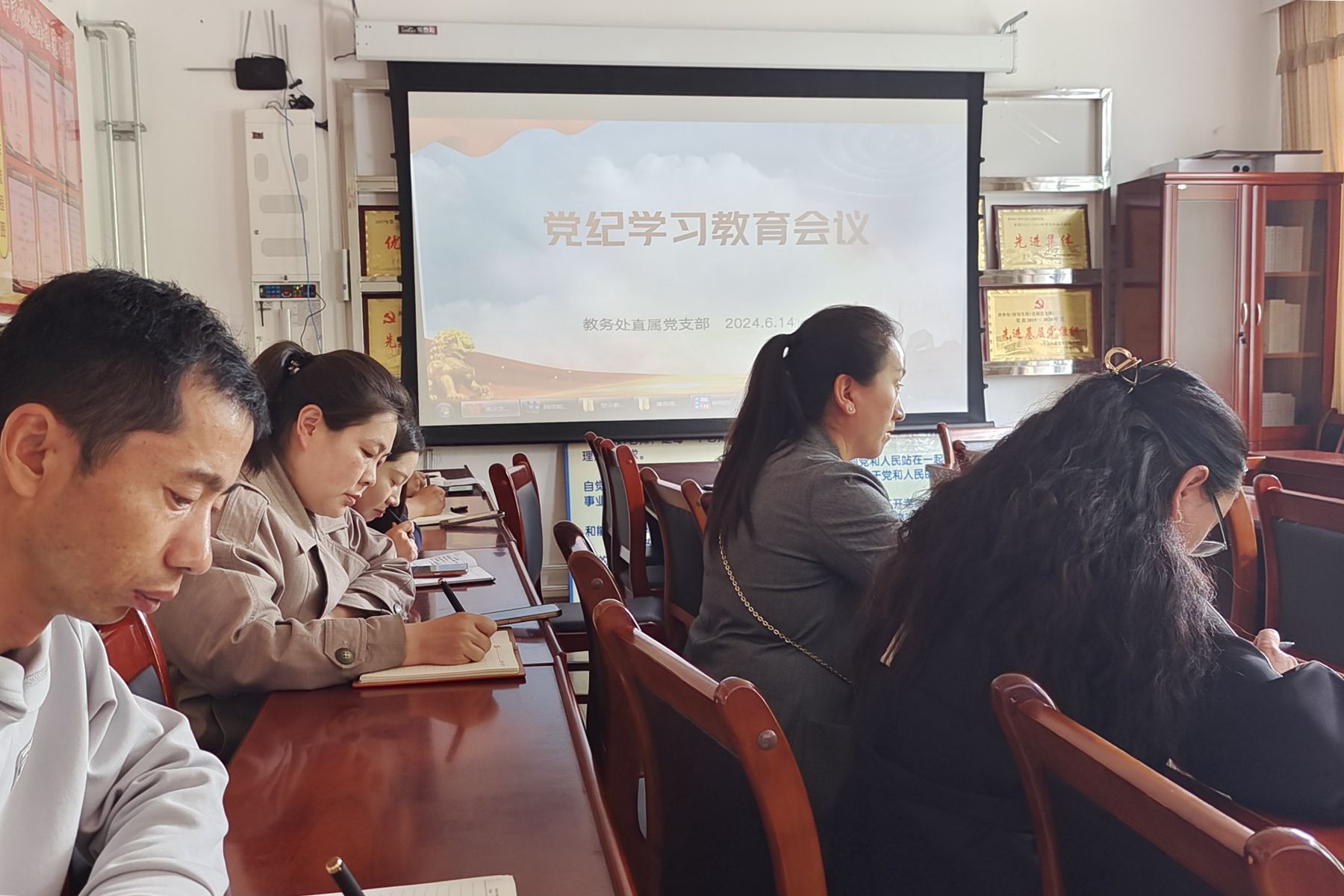 6月14日上午,教务处直属党支部召开党员大会,深入开展党纪学习教育。支部书记米玛顿珠主持会议,全体在家党员参加会议。