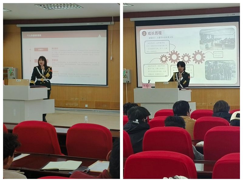 随后,来自植物科学学院农林经济管理专业的两位退伍复学同学张庭蓉、姜军彤分别为大家生动分享了部队的生活和训练情况,他们号召同学们积极应征入伍,到部队去锻炼自己,成就自己。