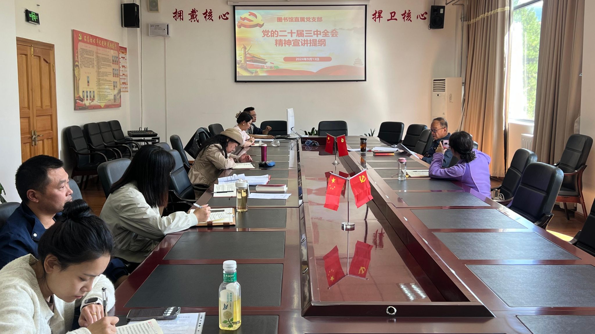 为深入学习贯彻党的二十届三中全会精神,9月13日下午图书馆直属党支部组织开展了全会精神宣讲活动,由图书馆直属党支部书记张宏伟担任宣讲人,向全体党员及图书馆工作人员传达全会重要内容和精神内涵。