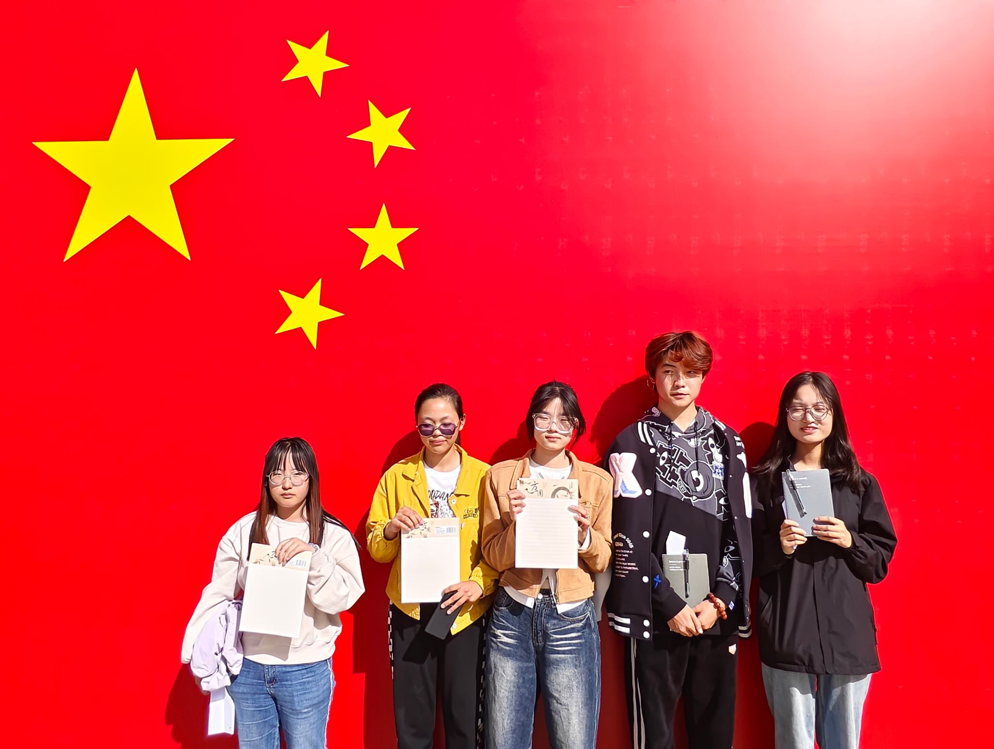 活动开始前,全体人员参加隆重的升旗仪式。伴随着庄严的国歌声,五星红旗冉冉升起,迎风飘扬。在场的每一位师生,目光都聚焦在这面鲜艳的红旗上,心中充满了无比的自豪与敬仰。随后,青年马克思主义研究协会全体成员在国旗下集合,他们心怀对祖国母亲的深深敬意,共同拍摄了一段满载对祖国母亲美好祝愿的视频。接着,为激发我校师生的爱国主义精神和营造团结友好的校园氛围,青年马克思主义研究协会、青年志愿者协会和公共教学部学生会准备了许多丰富多彩的活动,有充满趣味的套圈活动、考验诗词功底的飞花令、紧张激烈的抢凳子游戏等。