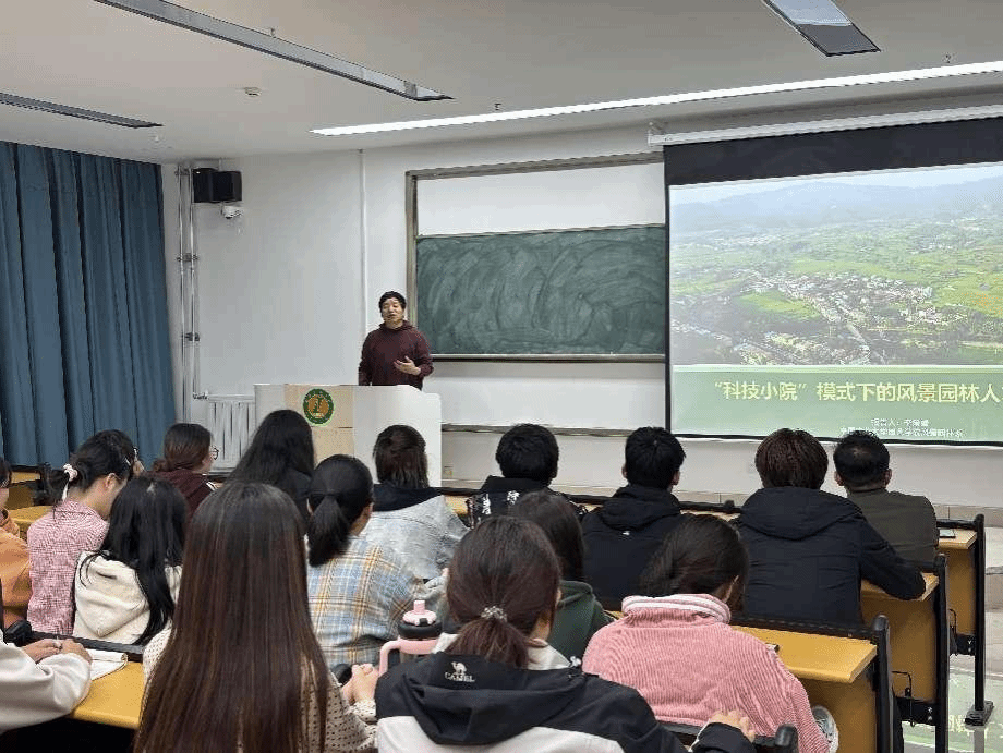 展览期间,李险峰教授以“‘科技小院’模式下的风景园林人才培养”为题,从风景园林人才培养思考、“科技小院”模式解读及“科技小院”模式下的风景园林人才培养三个方面,为园林教研室教师、风景园林专业硕士生、园林专业本科生作报告,并围绕实践案例进行研讨交流。强调,风景园林专业要以“空间”为引,聚焦人居环境提档升级以及助力乡村振兴与产业发展等,通过接地气的实践与研究,推动高质量的风景园林人才培养。