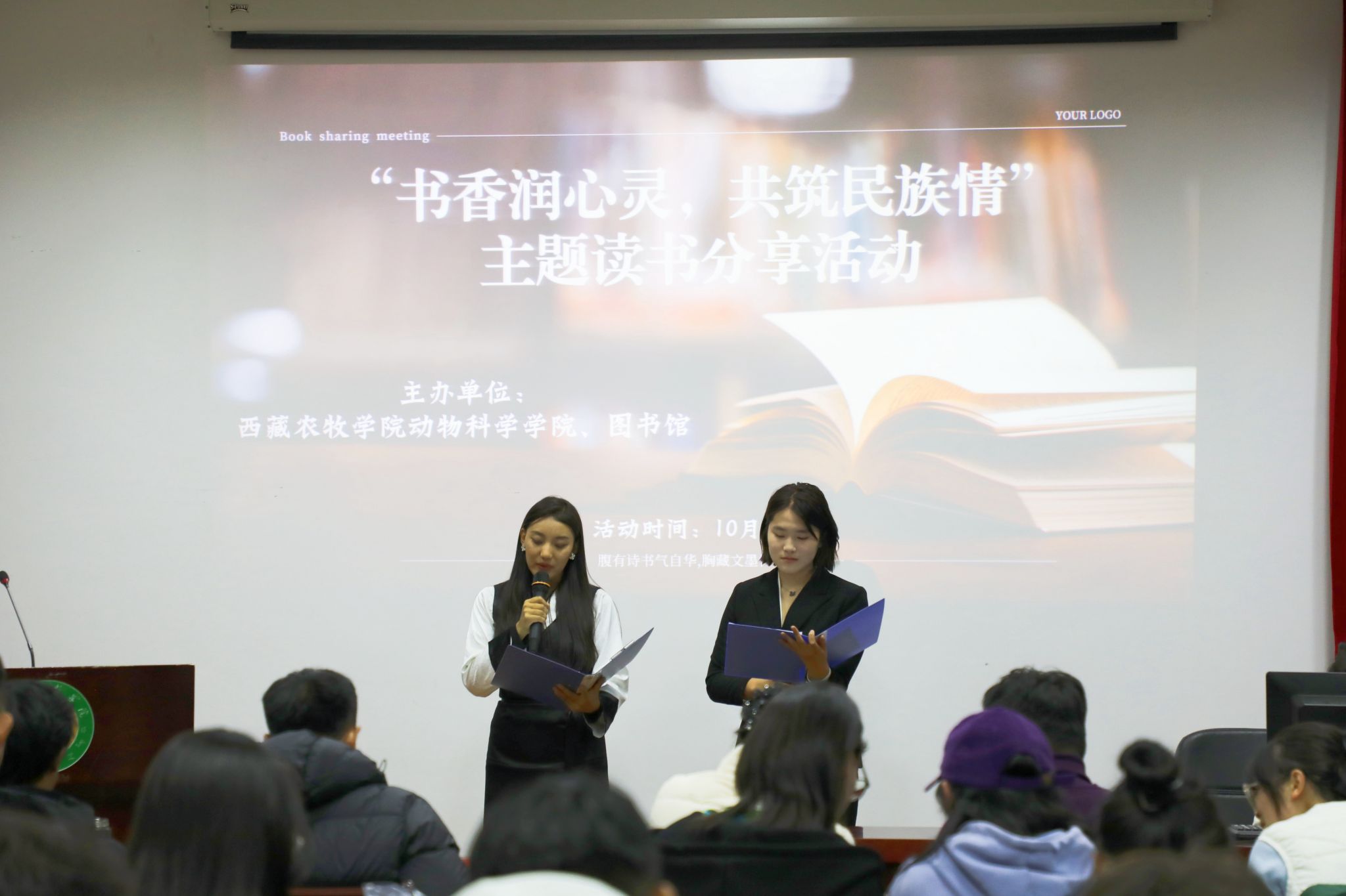 西藏农牧学院图书馆作为高校办学的三大支柱之一,肩负着为培养优秀人才提供知识、信息、资料的重任,同时为加强营造浓厚的读书氛围、提高大学生人文素养与校园民族文化品位、打造特色书香校园目标,为铸牢中华民族共同体意识,全面落实立德树人根本任务,根据学校教育发展目标、专业特色及地域特点,利用图书馆拥有的丰富馆藏和资源等积极为大学生提供切实有效的阅读指导,于10月28日晚携手动物科学学院在图书馆三楼学术报告厅举办了“书香润心灵,共筑民族情”主题读书分享活动。