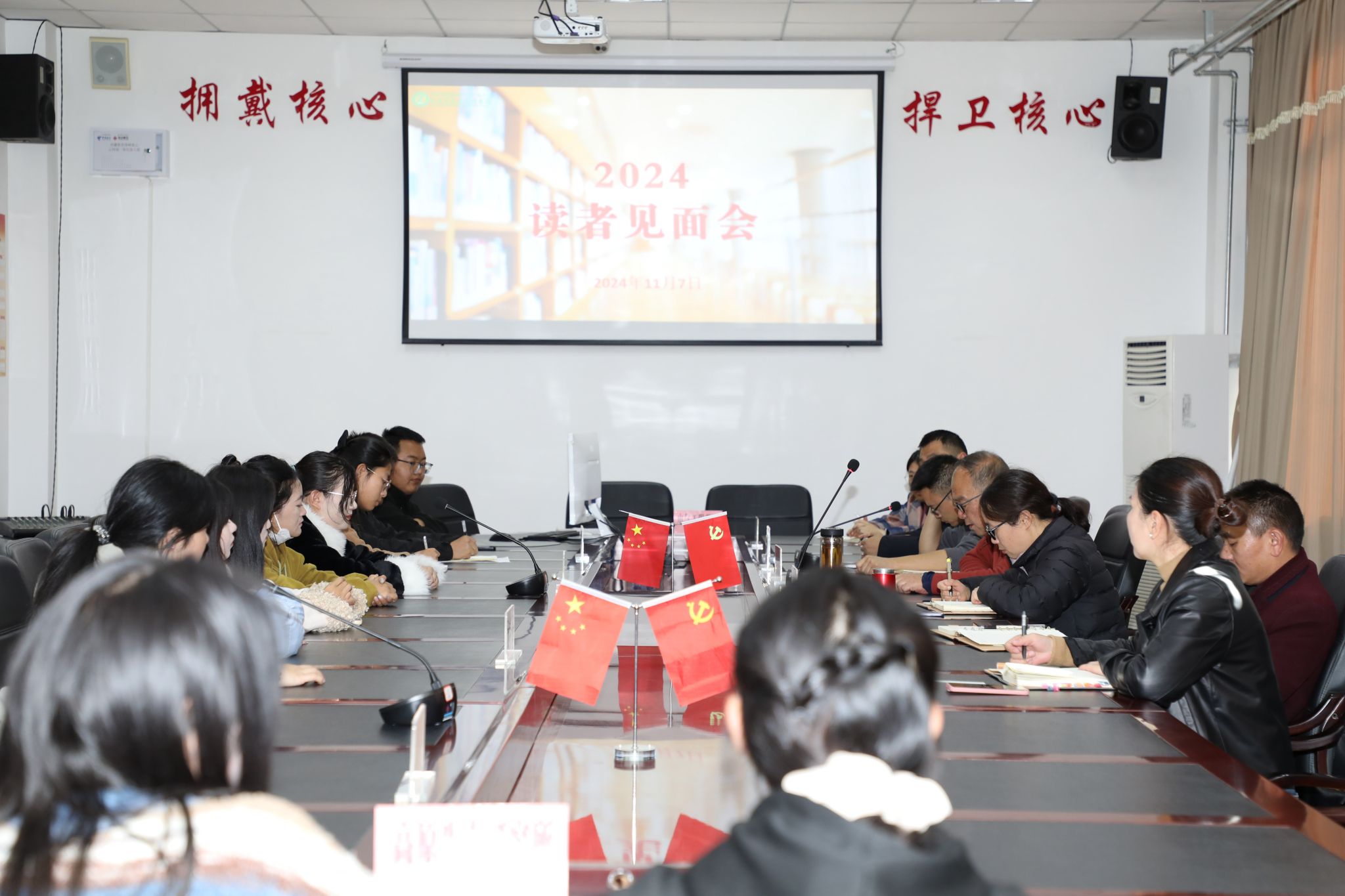 为进一步提质增效,切实摸清底数抓落实、打牢基础见实效,提升图书馆服务质量,增强读者利用图书馆的效能,充分发挥图书馆资源优势,共谋图书馆发展大计,积极听取广大读者的意见和建议,图书馆于 2024 年 11 月 7 日成功举办了一场别开生面的读者见面会。此次会议由流通阅览部主任蒋涛主持,图书馆馆长张宏伟、副馆长唐兰及各科室负责人列席。