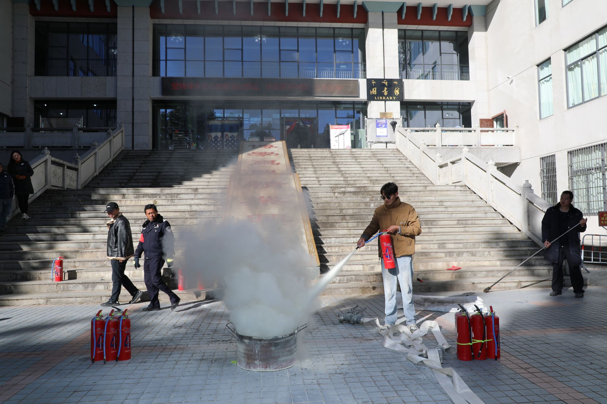 为切实增强图书馆全体工作人员及读者的消防安全意识,提高应对突发火灾事件的应急处置能力,2024 年 11 月 7 日上午10:00,图书馆精心组织开展了一场全面且生动的消防应急疏散演练,并且特别加入了灭火器的使用及实操环节。校安全保卫处处长王海山、图书馆馆长张宏伟到现场指挥,图书馆副馆长唐兰主持。