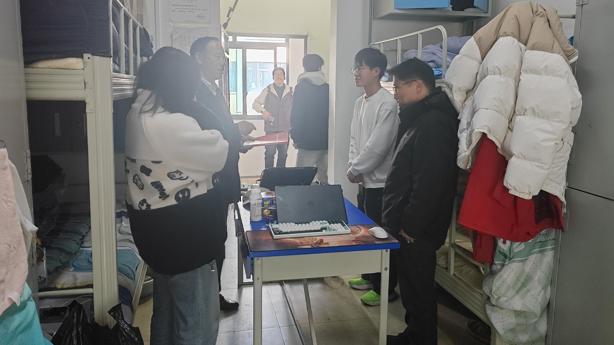 其次是9栋205宿舍模拟发现非法出版物设计,情况发生后,迅速通知县处级领导干部楼长、分管学生工作副书记、辅导员、班主任、宿管科工作人员、宿管员、宣传部领导、安保处领导、学工处领导到达现场。对非法出版物来源及传播情况进行排查,并按照流程调查参演学生的日常学习、生活、思想动态、行为轨迹。同时,对宿舍其他成员进行排查,对宿舍成员进行教育引导和舆情控制,演练结束后,指挥部组织参演人员总结,针对问题整改。