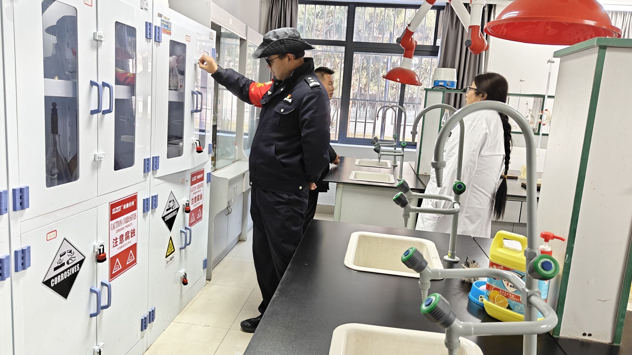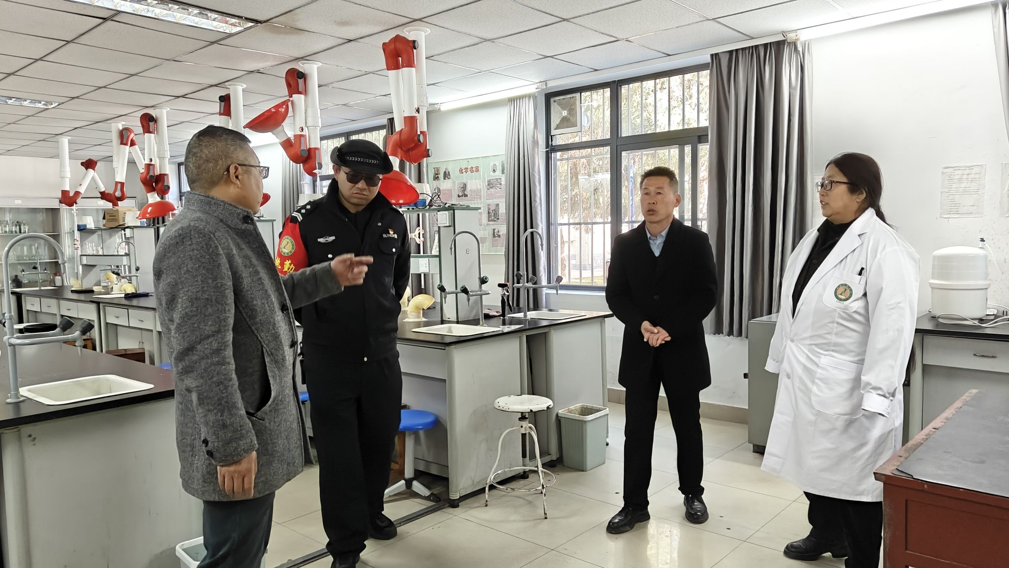 为加强学校实验室安全管理,保障师生生命财产安全,2024年11月12日星期二,教务处联合安保处、科研处、后勤处学校各类实验室安全制度建设、危险化学品管理、仪器设备安全、消防设施配备、实验室废弃物处理等方面进行了全面检查。