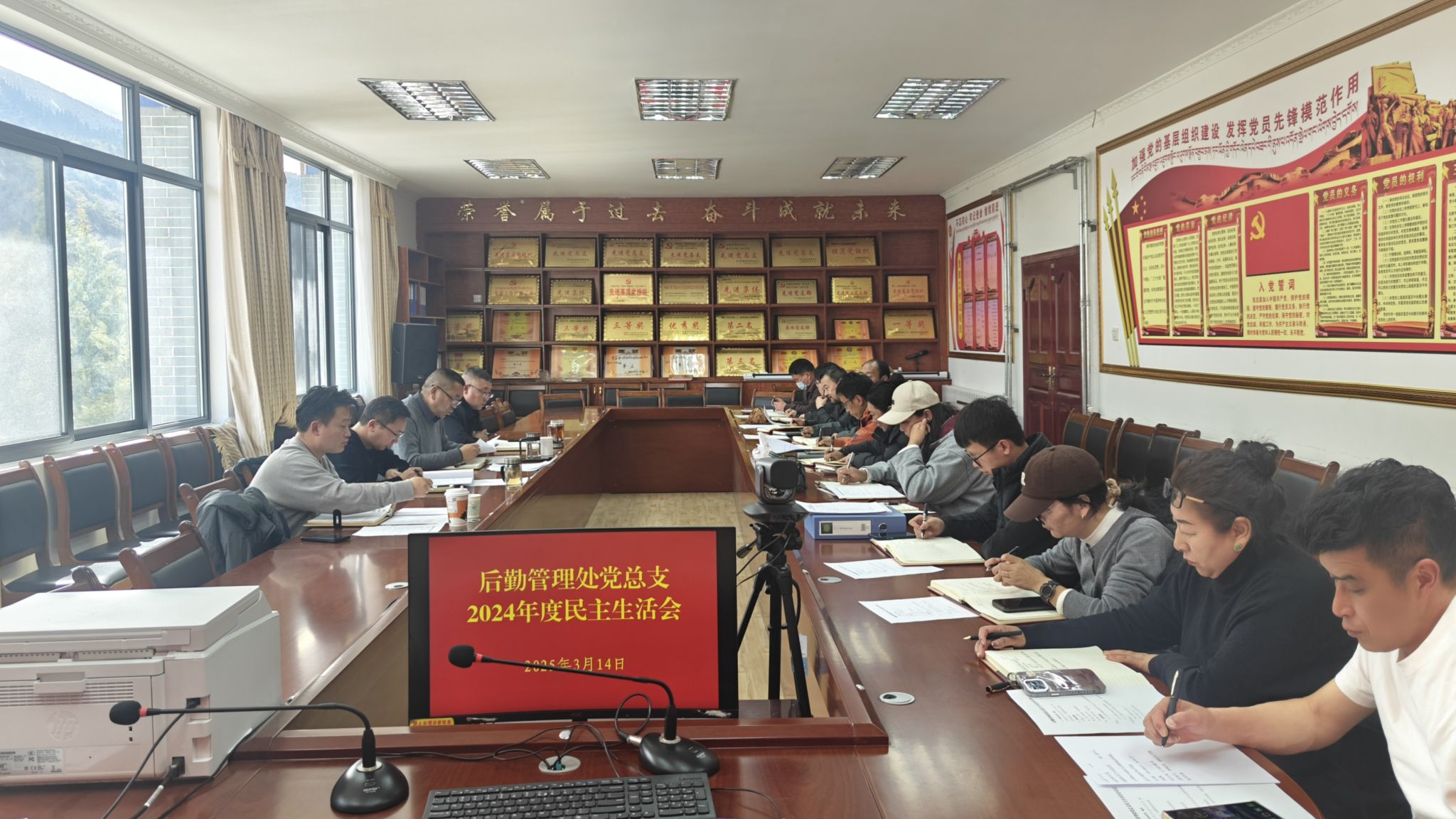 为了进一步深入学习贯彻落实党的二十届三中全会精神和自治区党委十届六次全会精神,巩固党纪学习教育成果,严肃党内政治生活,提高党员领导干部的履职担当、遵规守纪意识,3月14日下午,后勤处党总支召开2024年度民主生活会。会议由后勤管理处党总支书记普穷主持,学校党委组织部巴桑次仁老师列席会议。