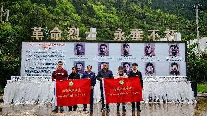 在行程中,师生们还专程前往通麦瞻仰了“十英雄纪念碑”,重温川藏公路建设的艰辛历史。这座纪念碑静静矗立,虽无言却胜似有言,承载着十位英雄为修筑川藏公路,不惧艰难险阻、不惜牺牲生命的伟大事迹。在这里,党员们深刻感受到了“两路”精神的内涵。“一不怕苦、二不怕死,顽强拼搏、甘当路石”,这不仅仅是一句口号,更是“十英雄”乃至无数川藏公路建设者们用生命践行的信念。这种精神,激励着党员们在面对工作中的困难和挑战时,要勇于担当、敢于作为,不怕吃苦、不惧牺牲。