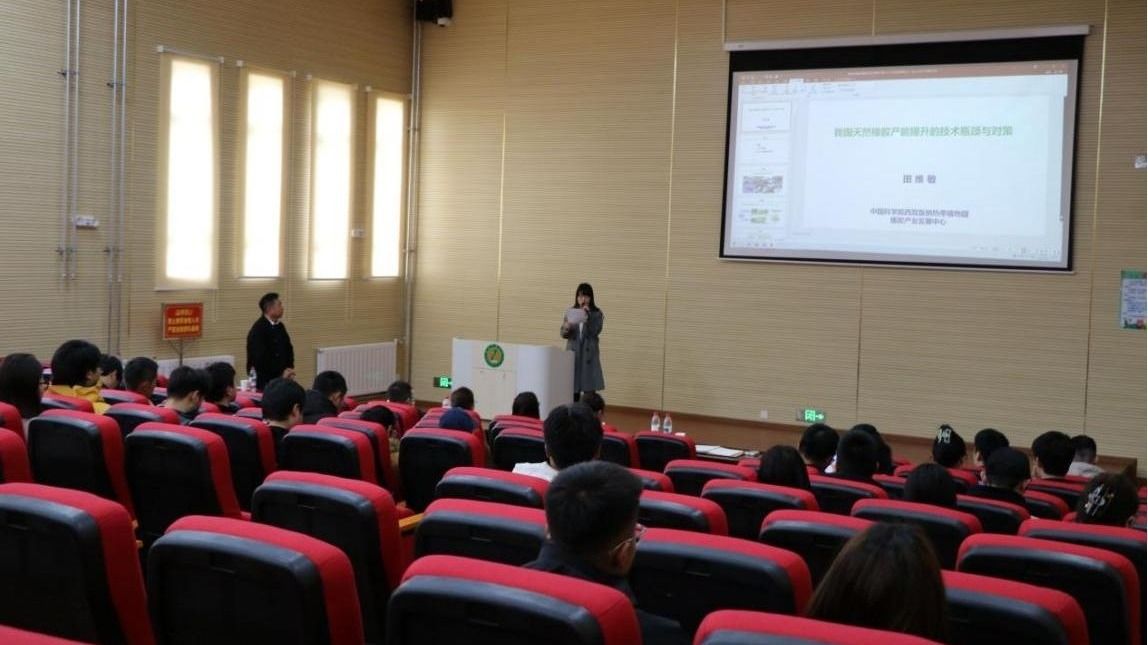 2025年5月7日,中国科学院西双版纳热带植物园橡胶产业发展中心主任田维敏教授应邀来资源与环境学院开展工作交流。7日16时,田维敏教授在6601学术报告厅作“我国天然橡胶产能提升的技术评价与对策”的学术报告,系统地对我国天然橡胶事业发展历程进行介绍,高屋建瓴地对解决我国天然橡胶产能提升面临的技术瓶颈及对策进行展望,并与参会的师生开展了热烈交流。报告会由资源与环境学院万丹副院长主持,我校50余名师生参加此次活动。报告会前,举行田维敏教授专著捐赠仪式,图书馆陈虎老师和索朗次吉老师参加此次活动。