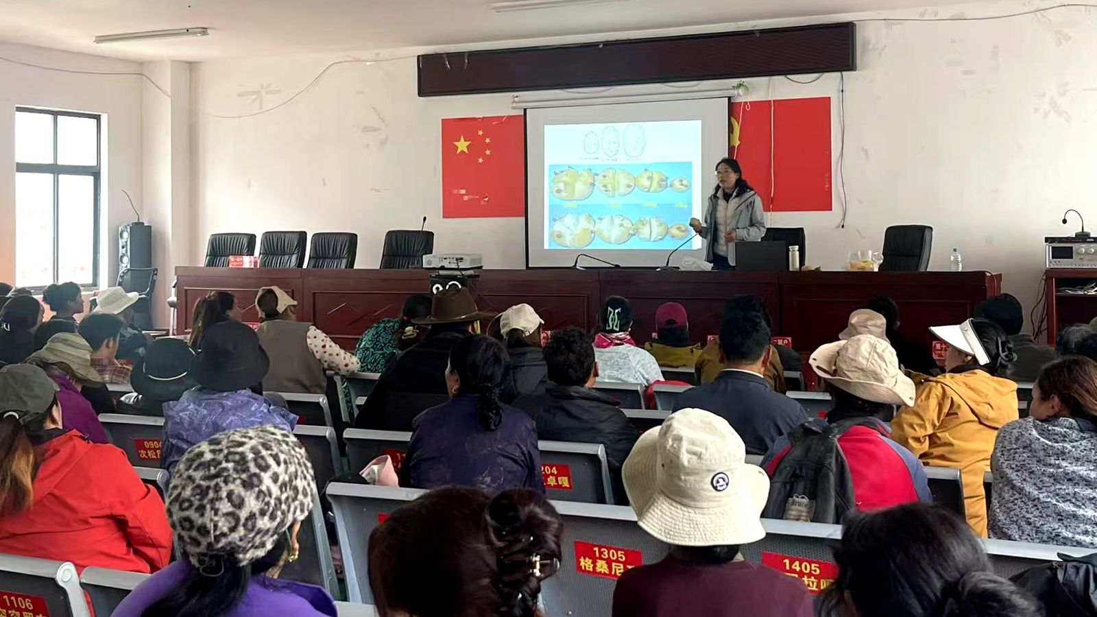 在活动周期间,我校何燕副教授赴波密县倾多镇栋曲村开展土豆栽培切块种植技术培训,采用图文并茂的形式,用通俗易懂的语言为广大村民上了一堂科普课。互动交流环节,在场村民踊跃提问,何教授详细解答他们在选种、种植以及田间管理等方面的疑问。培训讲座受到村民的热烈欢迎和一致好评。