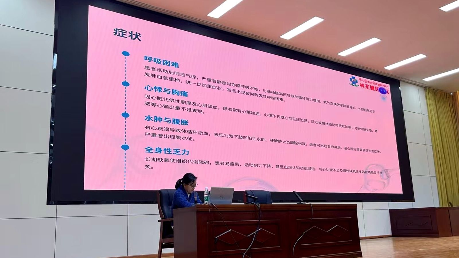 讲座开始前,李新堂对健民医院专家的到来表示热烈欢迎与诚挚感谢,强调健康知识普及对高原师生的重要性。随后,李艳凭借丰富的临床经验与扎实的专业知识,围绕高原地区常见的高原性心脏病进行深入浅出地讲解,内容涉及疾病概述、病因与发病机制、临床表现、诊断标准、治疗原则等方面,并结合生动案例与实际生活场景,用通俗易懂的语言加深了与会师生对高原肺动脉高压病的认识。