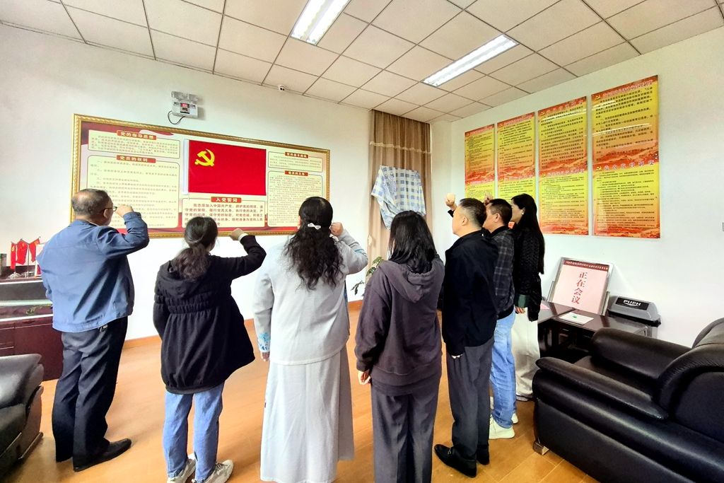 重温誓词,坚守初心使命。活动伊始,全体党员庄重地重温入党誓词。在庄严的氛围中,每一位党员以洪亮的声音宣读誓词,句句誓言彰显出对党的忠诚与为党的事业奋斗终身的决心。此次重温入党誓词,正值“两个一百年”奋斗目标的历史交汇点,为党员们提供了检视初心、校准方向的重要契机,激励着党员将誓词融入实际行动,践行对党的绝对忠诚。