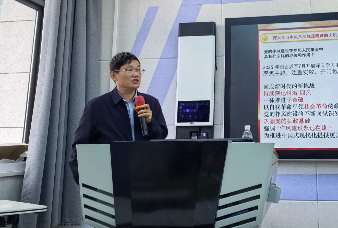 2025年7月16日,校党委委员、副校长巩同梁同志为图书馆直属党支部、后勤党总支、水利土木工程学院党委党员讲授专题党课,聚焦深化落实中央八项规定精神,强化党员干部作风建设。