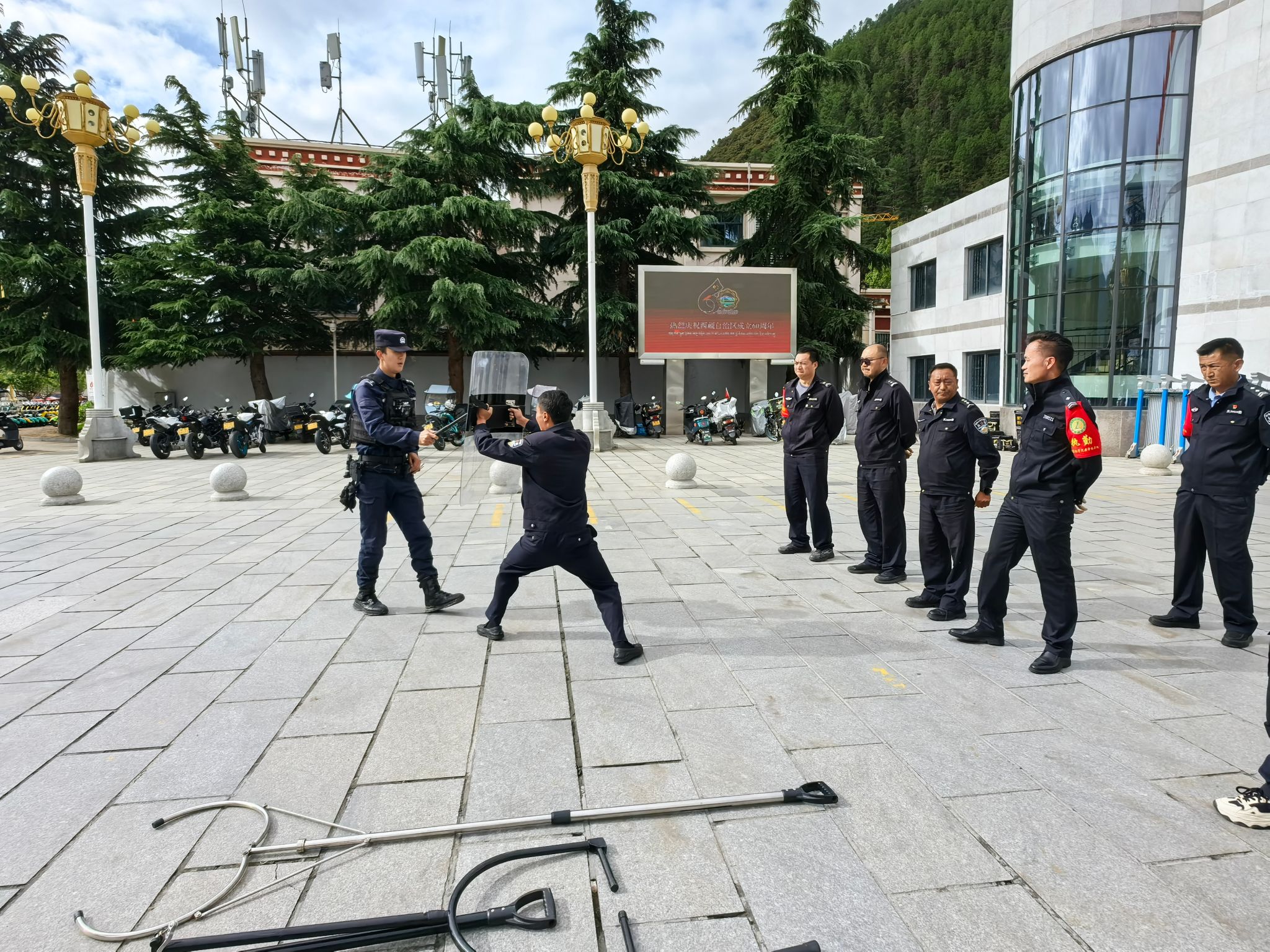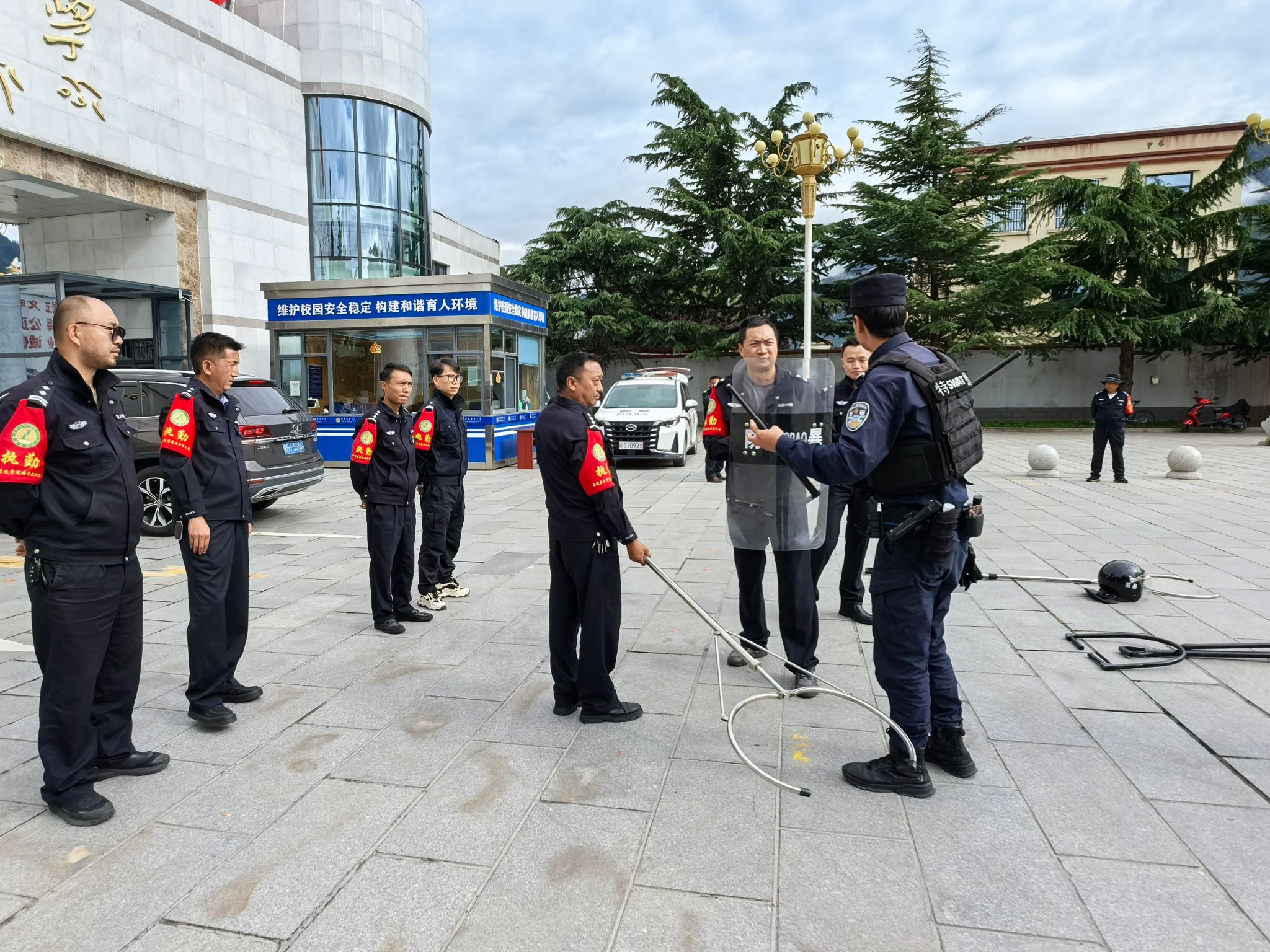 校园安保工作一直是我校重点工作之一,安全保卫处和派出所定期组织安保人员开展培训,提升专业技能水平,正确掌握安保器材使用方法,提高面对突发暴力恐怖事件的防范和自救意识,此次演练特邀请巴宜区特警大队教官指导。