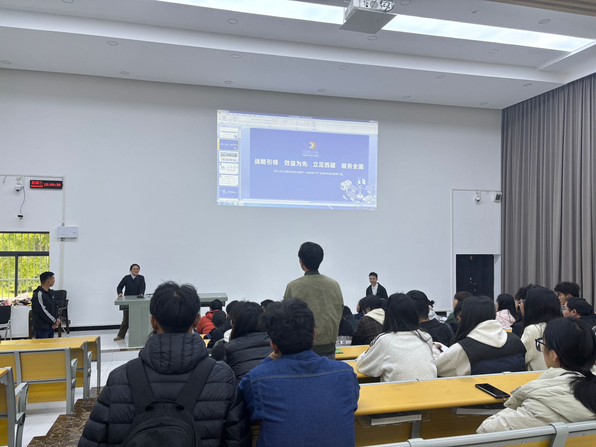 为落实学校对毕业生就业工作的要求,切实推进毕业生高质量就业,9月23日上午在我校2教106教室举办西藏开发投资集团有限公司校园专场招聘宣讲会。本次招聘会由西藏开投集团招聘负责人主讲,面向我校电气及其自动化工程、水利水电工程及土木工程专业2026届毕业生,参加招聘宣讲会的同学70余人。