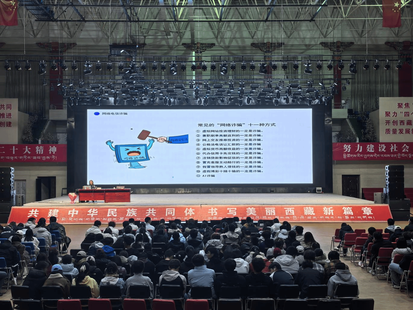 讲座伊始,林芝市网安警官何艳红为师生们带来了“擦亮双眼、筑牢防线——大学生防范网络电信诈骗指南”的精彩讲解。何警官指出,在数字化飞速发展的当下,网络电信诈骗给师生的财产安全和个人信息安全带来了极大威胁,而大学生由于社会经验相对不足,更容易成为诈骗分子的目标。