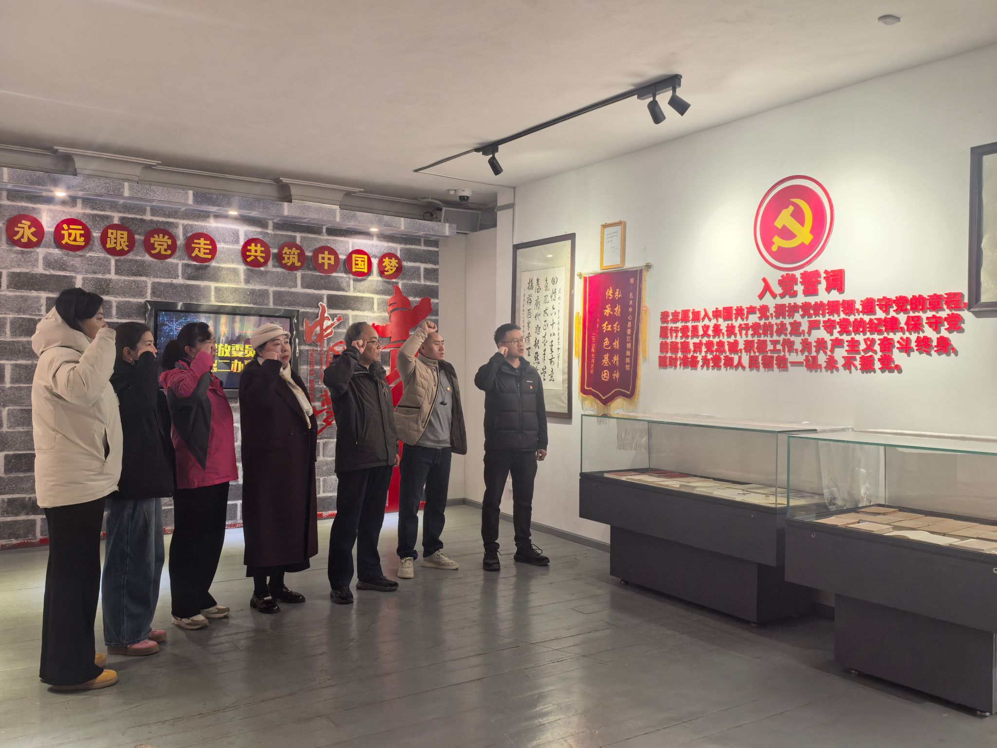 离开鲁朗知青点,党员们走进波密县扎木中心县委红楼。在专职讲解员的引导下,这座浸润着红色记忆的建筑缓缓揭开历史的面纱。讲解员结合详实的史料,生动讲述了红楼见证西藏民主改革历史转折的关键历程,以及共产党人在雪域高原践行初心使命的奋斗故事。党员们循着展陈脉络认真聆听,不时在文字史料与历史实物前驻足细细研读,系统梳理了红楼承载的革命历史与红色文化,对共产党人的责任担当有了更为深刻的体悟。为铭记这份精神传承,党员们面对熠熠生辉的党徽和鲜红的入党誓词,庄严举起右拳重温入党誓词,将先辈精神融入铿锵誓言,进一步坚定了立足岗位践行使命的决心。大家纷纷表示,将把这种跨越时空的精神力量融入图书馆日常服务工作,以更饱满的热情、更务实的作风为广大师生提供优质服务。