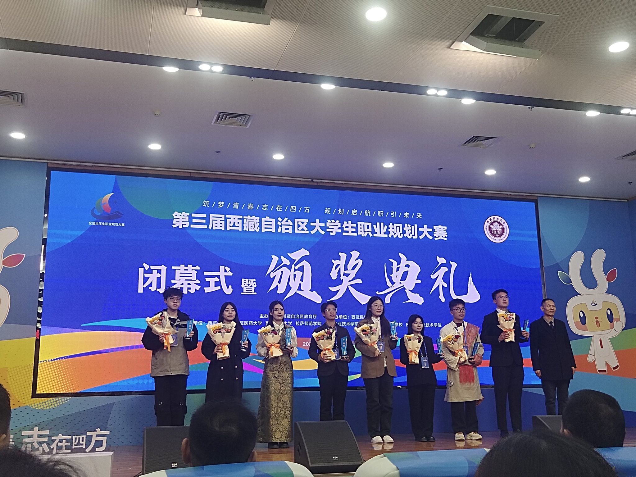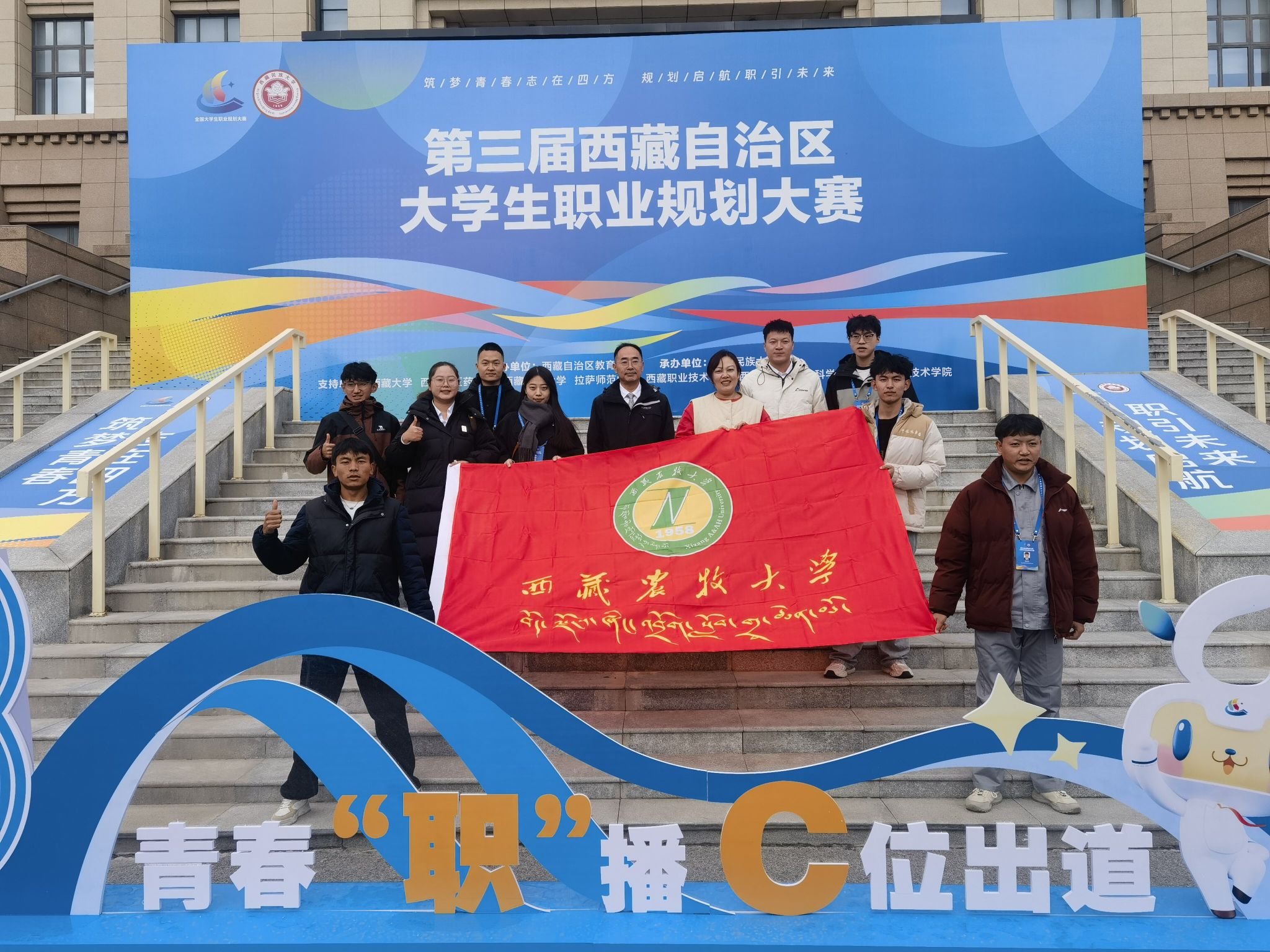 2025年11月16日-20日,我校学生工作部部长赵德军、就业创业办公室工作人员带领10名优秀选手赴咸阳参加由西藏自治区教育厅主办、西藏民族大学承办的第三届西藏自治区大学生职业规划大赛。通过激烈竞争,我校荣获研究生就业赛道2项铜奖。