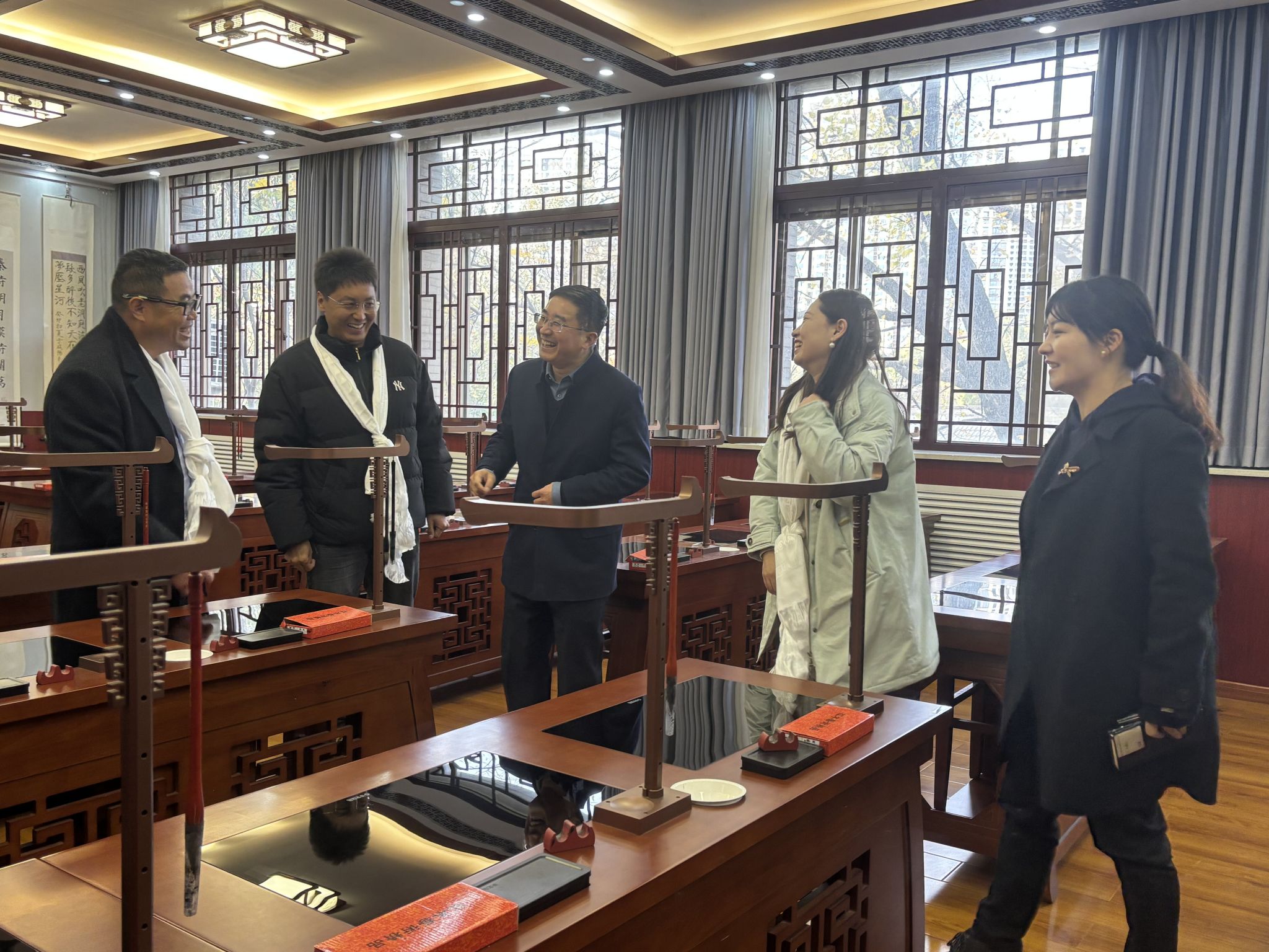 在王军君院长的带领下,贺玺浦副主任一行先后参观了文学院书法实训室、藏戏艺术展示厅、西藏当代文学研究中心以及期刊阅览室等教学科研场地。实地查看过程中,王军君院长详细介绍了各场地的功能定位、使用情况及特色资源,重点展示了文学院在西藏文学、藏戏文化传承、书法艺术教学等领域的育人成果。