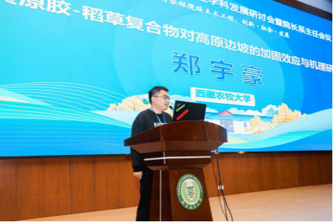 23级研究生郑宇豪同学作了题为“黄原胶-稻草复合物对高原边坡的加固效应与机理研究”的主题报告,揭示了西藏农牧大学水利土木工程学院在西藏特定高原冻融作用影响边坡稳定-加固-改良的问题上的研究工作和进展。