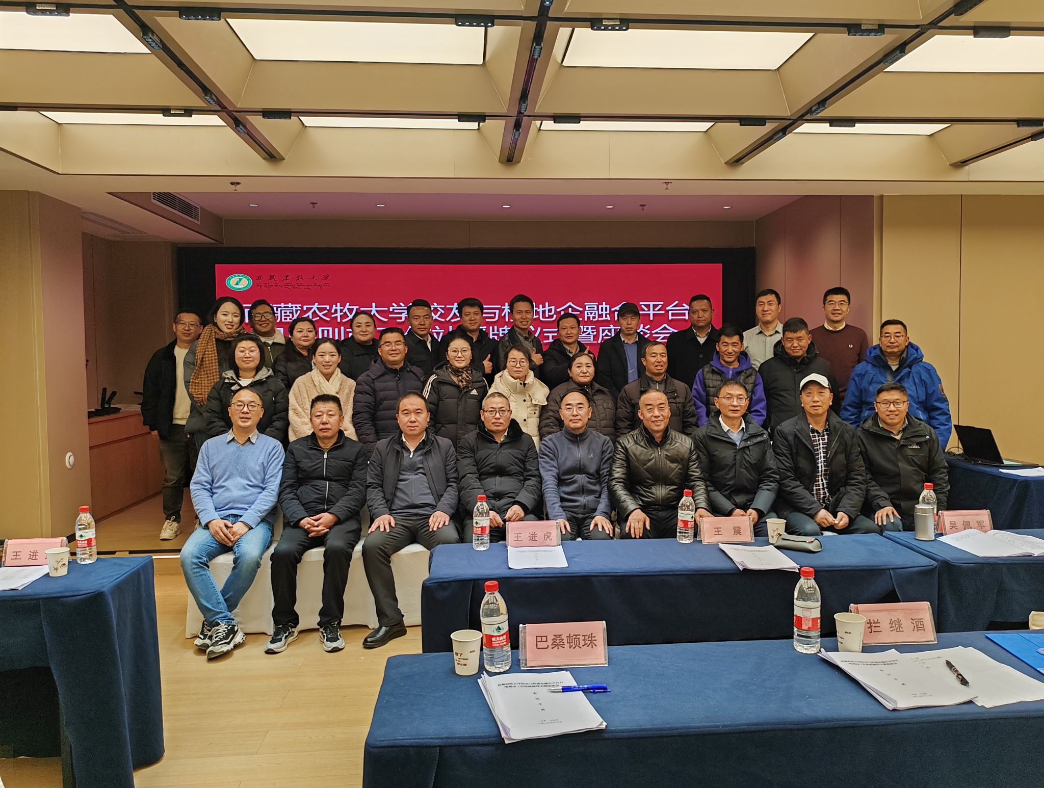 首先,西藏农牧大学研究生处处长张振宣读了日喀则站理事会及总联络员、联络员建议名单。随后,动物科学学院副院长柴进宣读了《日喀则站理事会工作规程(草案)》,明确了工作站的职责任务与工作规范,为下一步工作站更好服务校友、服务学校作用奠定了制度基础。科研处副处长胡炎、动物科学学院刘锁珠教授、田发益教授为校友联络员代表发放了聘书,进一步强化了工作站的联络保障机制。动物科学学院副教授穷达、学工部就业创业办公室梁金辉为校友代表发放佩戴校徽,重温母校情谊,凝聚校友力量。