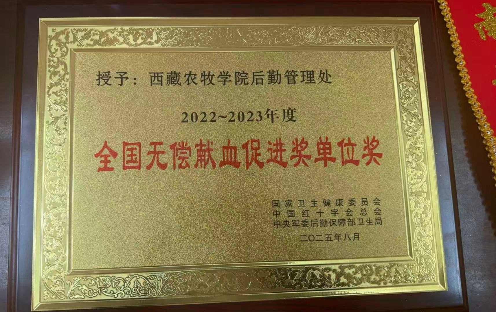 近日,国家卫生健康委员会、中国红十字会总会、中央军委后勤保障部卫生局等三部门给我校后勤管理处颁发了“全国无偿献血促进奖单位奖”,这一荣誉也是对全校各部门协调联动、坚守初心、践行公益的高度认可,更是全校师生用热血诠释责任、用行动传递大爱,彰显高校精神风貌的有力见证。