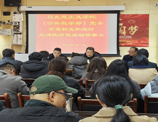 3月13日下午,马克思主义学院(公共教学部)党委在会议室召开树立和践行正确政绩观学习教育动员部署工作会议。会议由部党委书记衡思泉同志主持,学院党委班子成员及全体党员参加。