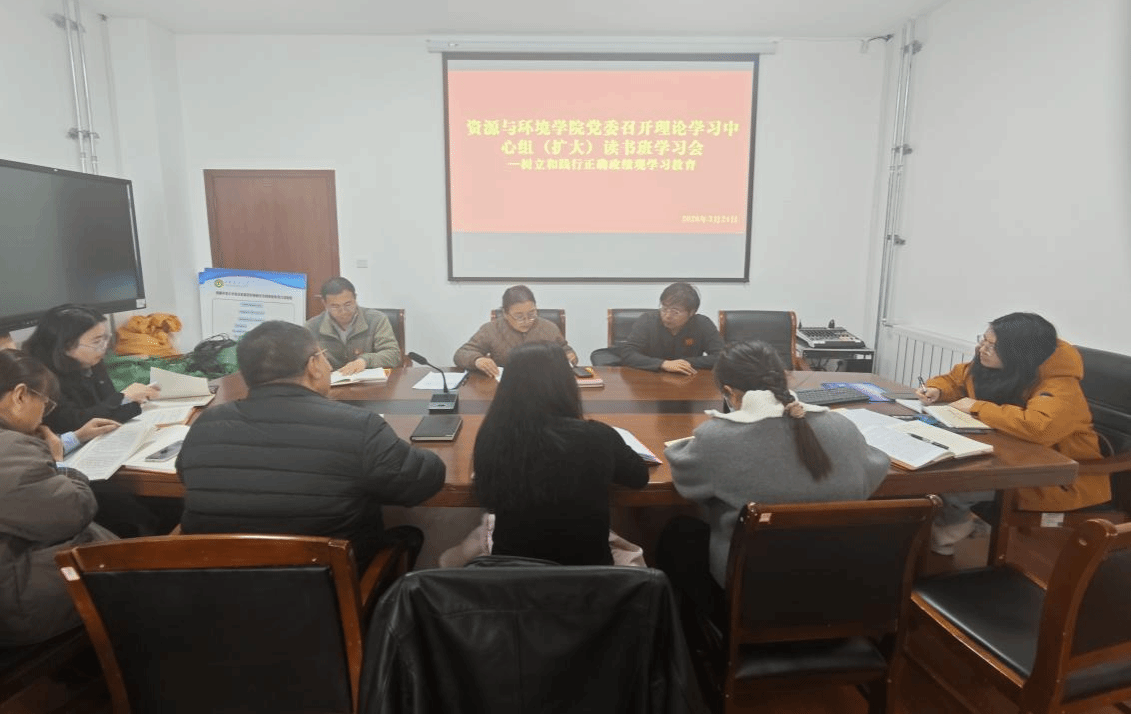 为深入贯彻落实党中央关于开展树立和践行正确政绩观学习教育的部署要求,紧扣2026年“十五五”开局起步关键节点,推动学院党建与人才培养、科学研究、社会服务深度融合,3月24日,资源与环境学院党委举办2026年理论学习中心组(扩大)读书班学习会议。院党委班子成员、党委委员、各党支部书记参加会议,会议由学院党委书记次仁吉主持。