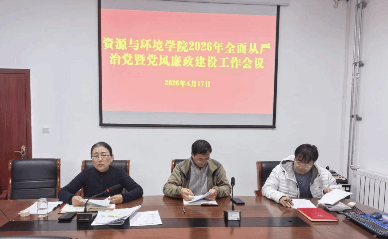 4月17日下午,资源与环境学院2026年全面从严治党暨党风廉政建设工作会议在六教五楼会议室召开。学院全体教职工参会,会议由学院党委书记次仁吉主持。