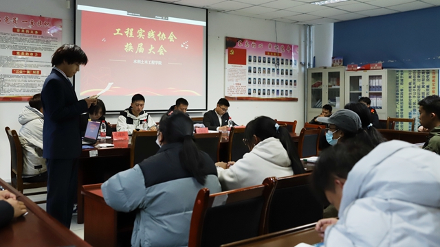 为深入贯彻落实习近平总书记给中国农业大学科技小院同学的回信精神和王君正书记在学校看望青年学生和教师时的讲话精神,牢固树立“应用为本”的人才培养理念,牢牢把握做好新时代教育工作的目标要求,培养品学兼优、德才兼备的高素质学生队伍,进一步加强水利土木工程学院工程实践协会队伍建设。2023年10月18日,水利土木工程学院在学院二楼会议室举行了2022-2023年度工作总结暨第八届换届竞选大会,学院副院长孙海波、团总支常务副书记曾横以及工程实践协会全体成员共计50余人参加了此次会议。