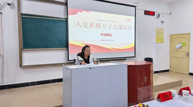开班典礼在大家起立奏唱国歌后拉开帷幕。会上,首先由学生代表杨韵蕊同学代表全体学员作了发言,她表示作为一名大学生入党积极分子,将珍惜此次学习机会,认真学习理论与实践知识,认真深刻学习掌握党的理论知识和光辉历史,自觉接受组织的培养、教育和考察,尤其是在以后的学习生活中以党员标准严格要求自己,努力以实际行动争取早日加入中国共产党。接着,由秦丽同志宣读了《植物科学学院入党积极分子党课培训班课程内容、纪律要求及有关规定》,对此次培训班的学员在学习安排、纪律要求、监督考核等方面作了详细的介绍并提出了具体要求,她表示本次培训班党课课程通过线下和线上相结合的授课形式进行,希望同学们按照教学计划认真学习做好笔记,并严格遵守党课纪律,努力提高政治理论水平,不断坚定共产主义信念。