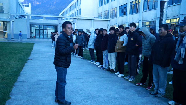 7:30警报第一次响起表示发生地震,学生自觉躲避在宿舍安全角落。之后第二次警报响起代表地震停止或发生火灾,大家纷纷捂住口鼻撤离,每层楼梯口有工作人员指挥防止拥挤踩踏,学生们按照指定路线迅速有序安全到达指定安全区域。整个演练过程有条不紊,井然有序,清点人数后上报活动总指挥,整个活动取得了预期效果。最后,旦巴副院长对演练过程作简要总结,指出了演练过程中的不足之处,并提出整改意见。