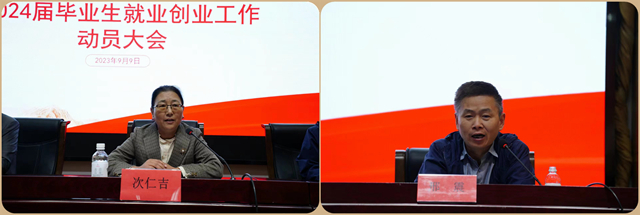 会上,次仁吉书记从把握政策、抓住就业机遇、实现人生价值方面深入解读各项就业创业政策,如何把握好政策,怎样认清形势等方面做了全面深入的介绍,对毕业生提出殷切的期望,要求学生进一步增强紧迫感和危机感,夯实专业基础,尽早做好求职规划。刑震院长就全国、全区、学校、学院就业率,毕业生专业、论文、政策、实习方面进行了分析总结,希望本届毕业生积极主动适应社会对人才的需要,在工作岗位上推荐自我、展现自我、成就自我。邹联付副书记从严格遵守政治纪律、自觉提高自身政治素质,严格遵守校规校纪、党纪国法,进一步强化学生遵规守纪意识,对全体毕业生提出要求。王忠红副院长从积极主动完成高质量的本科毕业论文,特别是设计论文方面做了辅导,针对往届毕业生实习、论文中出现的问题进行分析,要求同学们调整好心态,主动应对挑战,争取学业事业双丰收!闫飞副院长结合在北京林业大学实践和经验,从考研、专业、工作角度与同学们探讨了毕业生如何做好生涯规划做了交流。最后学院就业指导老师和俐从就业信息整理、准备求职材料、熟悉笔试策略、掌握面试技巧四方面为毕业生进行了一次比较全面的指导,提升毕业生求职竞争力。