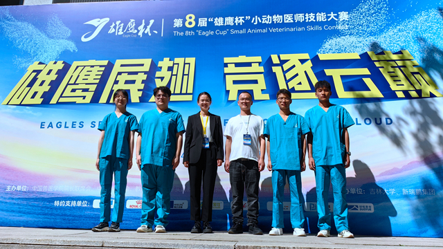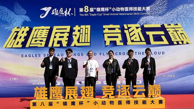 “雄鹰杯”小动物医师技能大赛是由教育部高等学校动物医学类教学指导委员会和新瑞鹏宠物医疗集团有限公司共同发起,中国兽医协会重点支持,全国各高等农林院校与新瑞鹏宠物医疗集团有限公司共同承办,全国临床兽医师及各高等农林院校学生参与的小动物临床技能大赛。大赛不仅是一次知识和技能的比武,更为同学们提供了一个互相交流学习、提升技能的平台。2023年第八届雄鹰杯小动物医师技能大赛于9月14-15日在吉林大学举办。我院学子阿旺顿珠、夏雨、王辰龙、扎西旺堆代表我院与来自全国117支参赛队伍同台竞技,喜获“团体二等奖”。