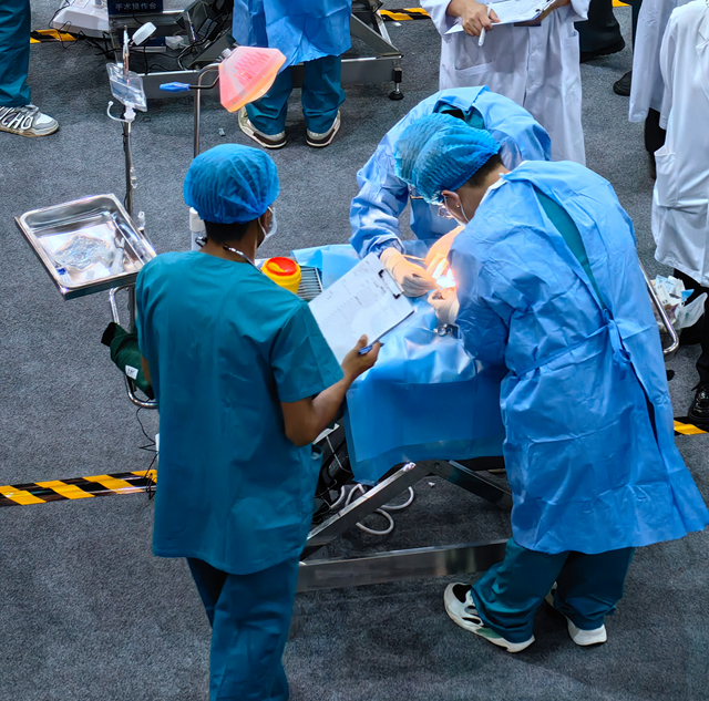 本次比赛分为笔试、知识竞答和实操三个环节,各占权重。笔试和知识竞答为全国执业兽医资格考试大纲;实操包括“兔胃切开术”、“血涂片制备与判读”、“徒手打结”三个部分。