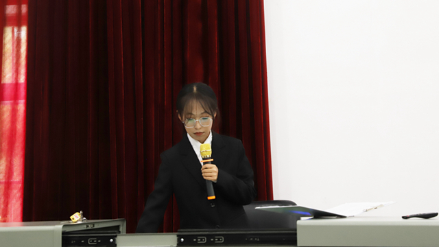 中午13:00,主持人向大家介绍本次会议出席的人员后,活动正式开始。首先由团总支副书记曾横对本次大会进行指导性发言,他对出席本次会议的同学们表示感谢,希望同学们明确自身方向,坚定自身理想,做到有计划、有目标,充实自己的大学人生。随后团总支、学生会各部门代表依次上台宣讲,他们通过PPT与视频展示的形式,根据部门特点为大家带来了别开生面的宣讲,内容或是风趣幽默,或是简洁明了,从各个方面解答了新同学心中的疑惑,对本部门的职能、发展、定位、招新标准及所开展的活动等进行了详细介绍。会议最后,学生会主席王威对本次活动做了总结发言,指出本次招新大会旨在同学们更加直观的了解各部门的职能,以便大家做出正确的抉择;祝愿水土学子实现自我价值,拼搏向上,共创辉煌。