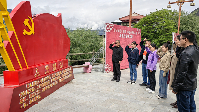 为深入学习贯彻习近平新时代中国特色社会主义思想主题教育, 进一步坚定理想信念,认真踏实做好本职工作,6月17日上午,图书馆直属党支部组织全馆党员前往嘎拉村红色研学主题教育展览馆开展主题党日活动。