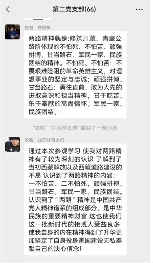 6月27日下午,在学院党委书记次仁吉的带领下,学院师生党员代表从学校出发徒步前往“两路精神”纪念馆,讲解员从“回溯历史感践行、修筑两路铸丰碑、五易寒暑变通途、艰苦卓越献忠诚、世界屋脊创奇迹、鱼水情深心连心、综合交通惠民生、雪域江南迎高速、四好路上奔小康、抢险保通展风采、两路精神放光芒”十一个方面的内容讲述70年来,西藏公路人秉承“一不怕苦、二不怕死、顽强拼搏、甘当路石、军民一家、民族团结”的精神,赓续雪域高原红色命脉,使西藏交通从无到有、从小到大、从弱到强的艰辛历程。参观结束后,参展学生以支部为单位分享各自的体会和感受。