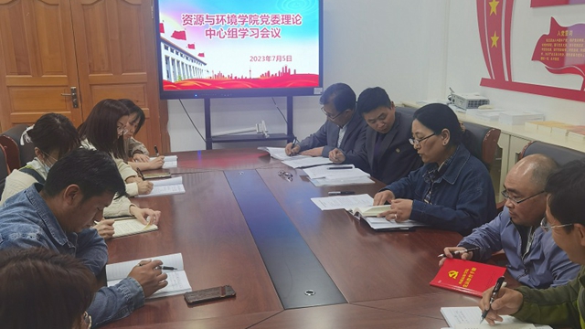 为持续推进学习贯彻习近平新时代中国特色社会主义思想主题教育走深走实,资环与环境学院党委于7月5日晚召开理论学习中心组学习会,党委班子成员围绕新党章内容进行学习,并结合分管领域工作实际进行研讨交流。会议由学院党委书记次仁吉主持,党委班子成员及各党支部书记参会。