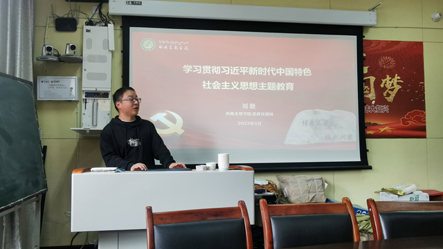 专题宣讲会邀请宣传部思政教研室刘毅老师进行宣讲,刘毅老师以《新时代铸牢中华民族共同体意识研究:逻辑缘起、价值底蕴、实践路径》为主题,对学习习近平新时代中国特色主义思想进行了专题宣讲。