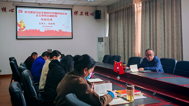 为进一步推进学习贯彻习近平新时代中国特色社会主义思想主题教育活动落到实处,5月19日上午,图书馆在会议室开展主题教育专题党课,图书馆全体职工参加学习。