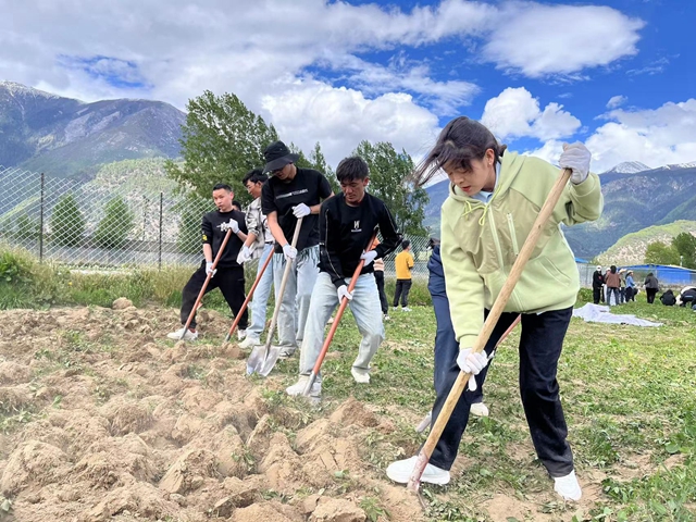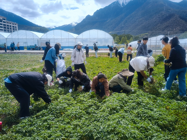 活动伊始,在动员环节次仁央金讲解了耕读教育的重要性、主要精神、八个方面具体内容,达瓦组织学习了习近平总书记给中国农业大学“科技小院”学生的回信精神,旺姆组织学习了习近平总书记关于“三农工作”的重要论述,要求大家从现在开始树立“把论文写在大地上”的思想,坚定要在广袤的农村、在推进乡村振兴伟大实践中留下足迹的信心和决心,充实劳动与实践教育,培养以家国情怀为底色、“三农”情怀为本色的知农爱农、强农兴农的人才,厚植爱农情怀,练就兴农本领,增强爱国兴藏、强农为农的使命感和责任感,为建设美丽幸福西藏贡献磅礴青春力量。最后,由朗杰和牛歆雨领队,作出具体活动安排,分组开展了实践活动,领导和老师也与同学们一道深入田间地头开展活动。