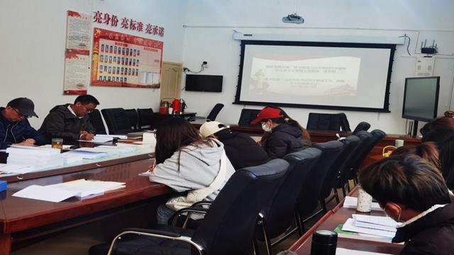 为深入开展学习贯彻习近平新时代中国特色社会主义思想主题教育,4月28日上午,植科学院师生党员读书班研读活动在党员活动室如期开展之中,本次读书班学习篇目是“习近平总书记关于教育工作、西藏工作的重要论述”。上午11:30许,学院党委书记达瓦、宣传委员董爱荣来到学习现场与大家一起学习。在看到大家紧扣主题认真学习的场景,为了提高大家的学习效果,达瓦以“加强民族团结,铸牢中华民族共同体意识”为题,给大家做了专题辅导。